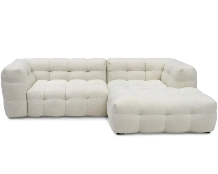 Cream är en modern modulsoffa som erbjuder generöst utrymme och en mjuk, inbjudande känsla i ett exklusivt bouclé-tyg. Soffans formspråk är iögonfallande men balanserat – där mjuka, rundade linjer möter en robust och boxig design. Resultatet är en soffa som känns både självsäker och välkomnande, och som naturligt tar plats som rummets centrala inredningsdetalj.