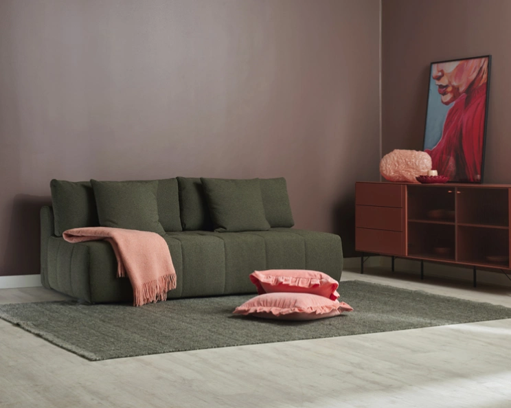 Den smarta konstruktionen gör soffan enkel att använda i vardagen. Med ett smidigt handgrepp förvandlas den från en bekväm soffa till en generös och inbjudande bädd, vilket gör den idealisk för gästrum, mindre bostäder eller när övernattande gäster dyker upp. Under sitsen finns dessutom praktisk förvaring, perfekt för sängkläder, kuddar eller filtar och ett effektivt sätt att hålla ordning i hemmet.