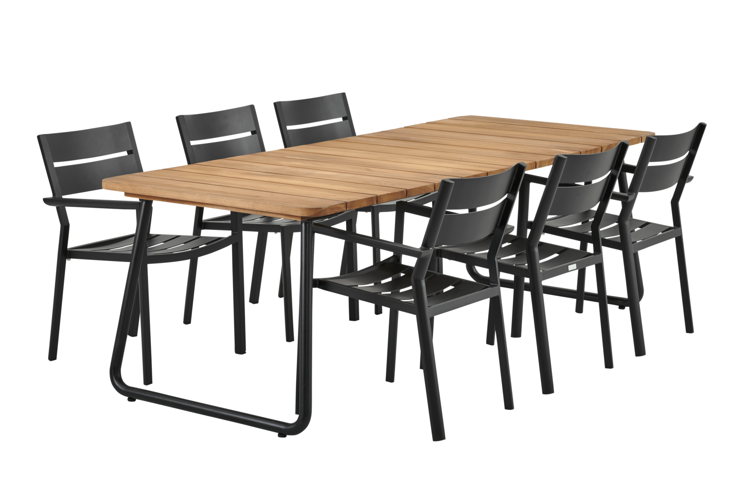 •Material: Breda teakskivor (bordsskiva), svartlackat aluminiumrör (ben)