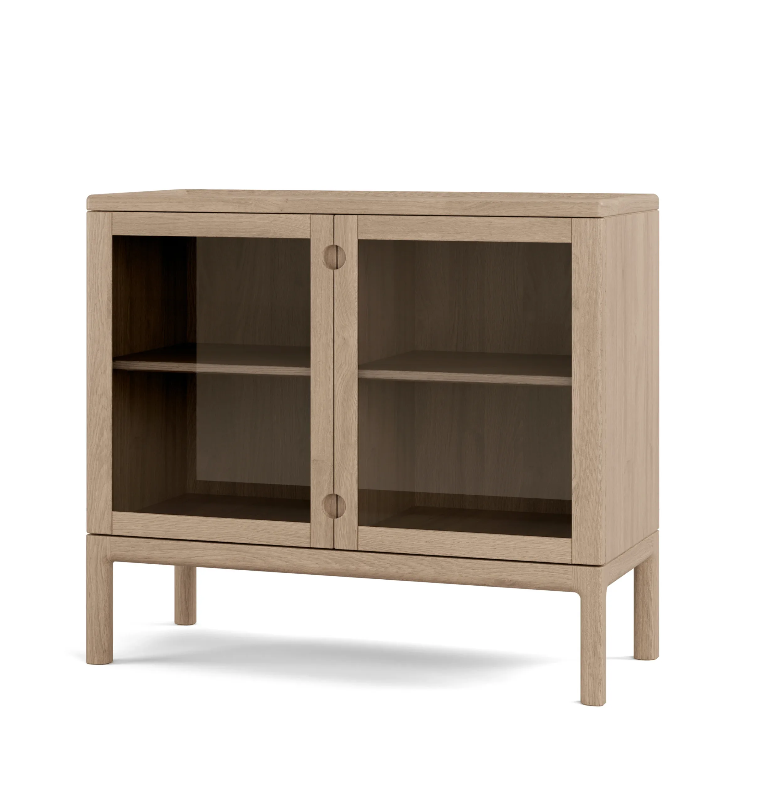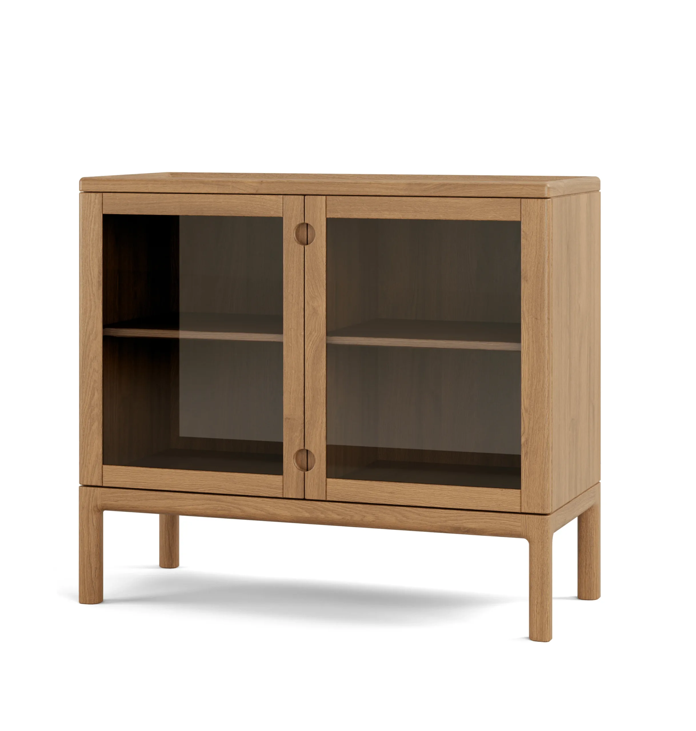 Förvaringsserien Prio utgörs av skåp och vitriner i flera olika utföranden. Prio passar till flera olika inredningsstilar då den antingen kan fås i massiv björk eller ek. Genom att alla beståndsdelar är gjorda i trä upplevs Prio exklusiv och naturnära. Det vackra i massivt trä visas upp i detaljer såsom urskålningen av toppen och handtagen samt den avrundade benställningen.