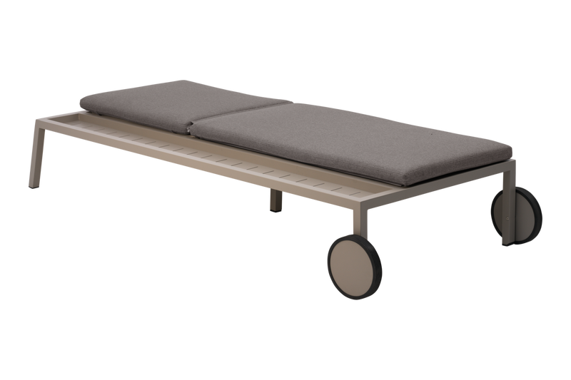 Lyxig vilsäng i aluminium med inbyggd sidohylla och smidiga hjul, utemöbler