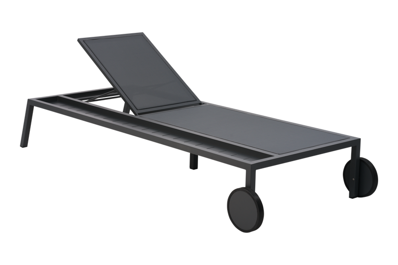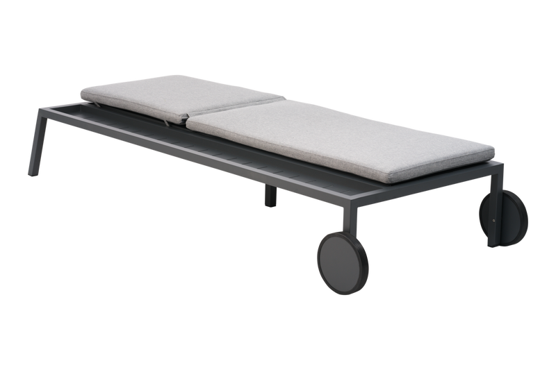 Lyxig vilsäng i aluminium med inbyggd sidohylla och smidiga hjul, utemöbler