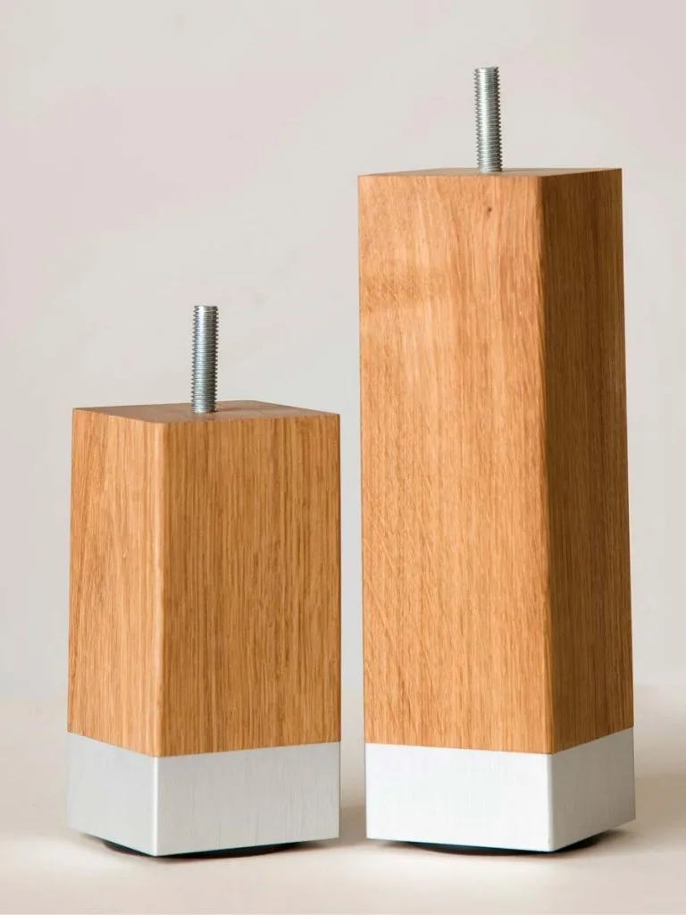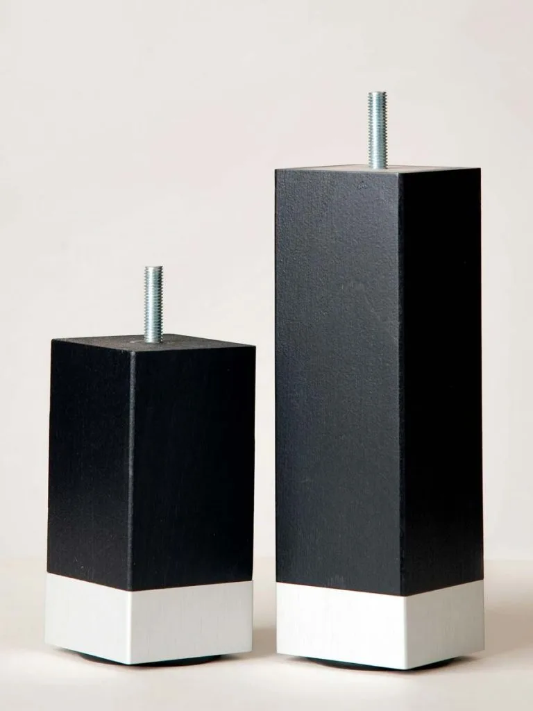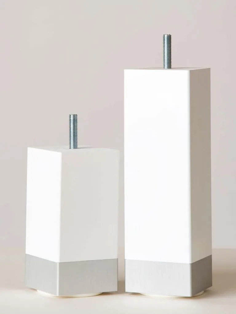 Fyrkantiga sängben med aluminium klack i flera utföranden.