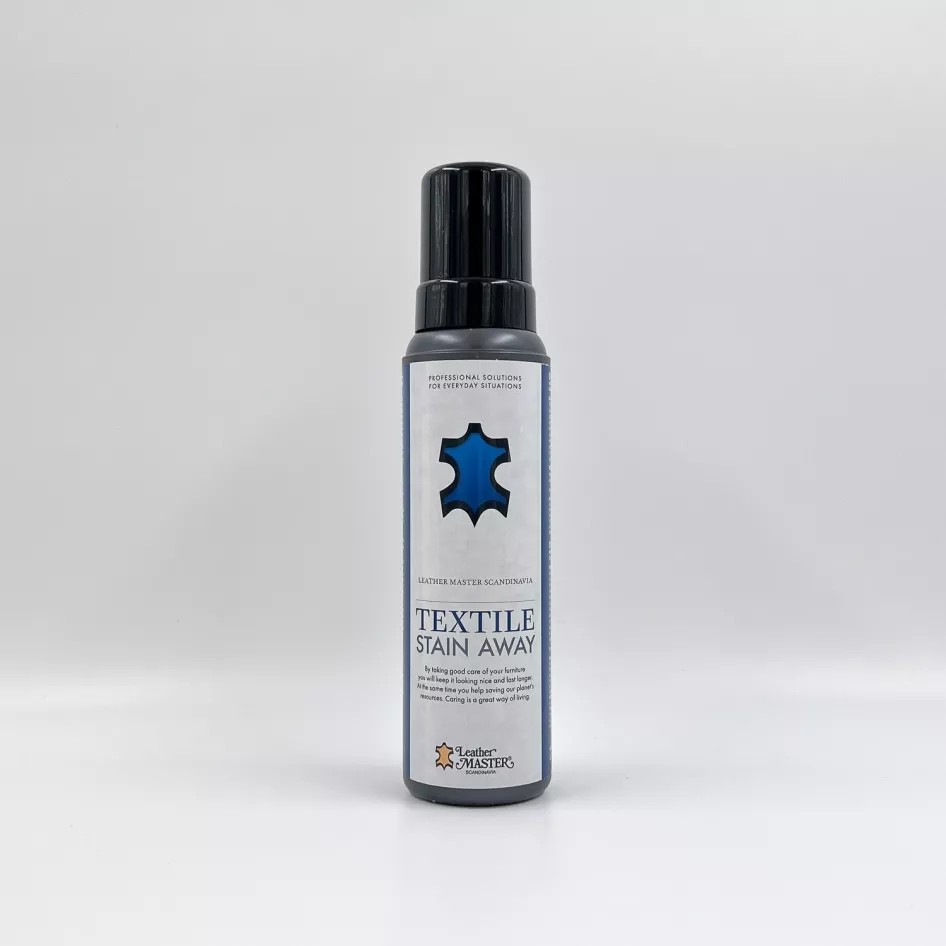 Dammsug textilen noggrant före behandling. Tryck fram skum på fläcken. Bearbeta ytan med en ren polyetersvamp utifrån och in mot fläcken (gnid ej) och avsluta med ytterligare skum på fläcken. Lämna skummet på ytan och låt textilen självtorka helt. Om fläcken inte försvunnit upprepas behandlingen. Eftertvätta vid behov den bearbetade ytan med Textile Cleaner, se flaskans etikett. Finns möjlighet kan textilen maskintvättas. Använd inte Stain Away på textil som inte tål vattentvätt. OBS! Testa alltid på en liten om möjligt dold yta för eventuellt färgsläpp m.m. innan arbetet påbörjas. Använd gärna engångshandskar.