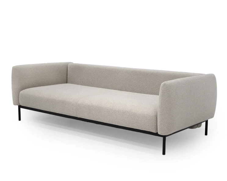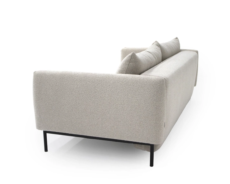 Designen är inbjudande och tidlös. De smakfulla ryggkuddarna tillsammans med de mjukt rundade armstöden skapar en harmonisk balans mellan komfort och estetik. Det beige tyget ger soffan ett lugnt och elegant uttryck som är enkelt att kombinera med olika färger, material och inredningsstilar, oavsett om ditt hem är modernt, klassiskt eller skandinaviskt.